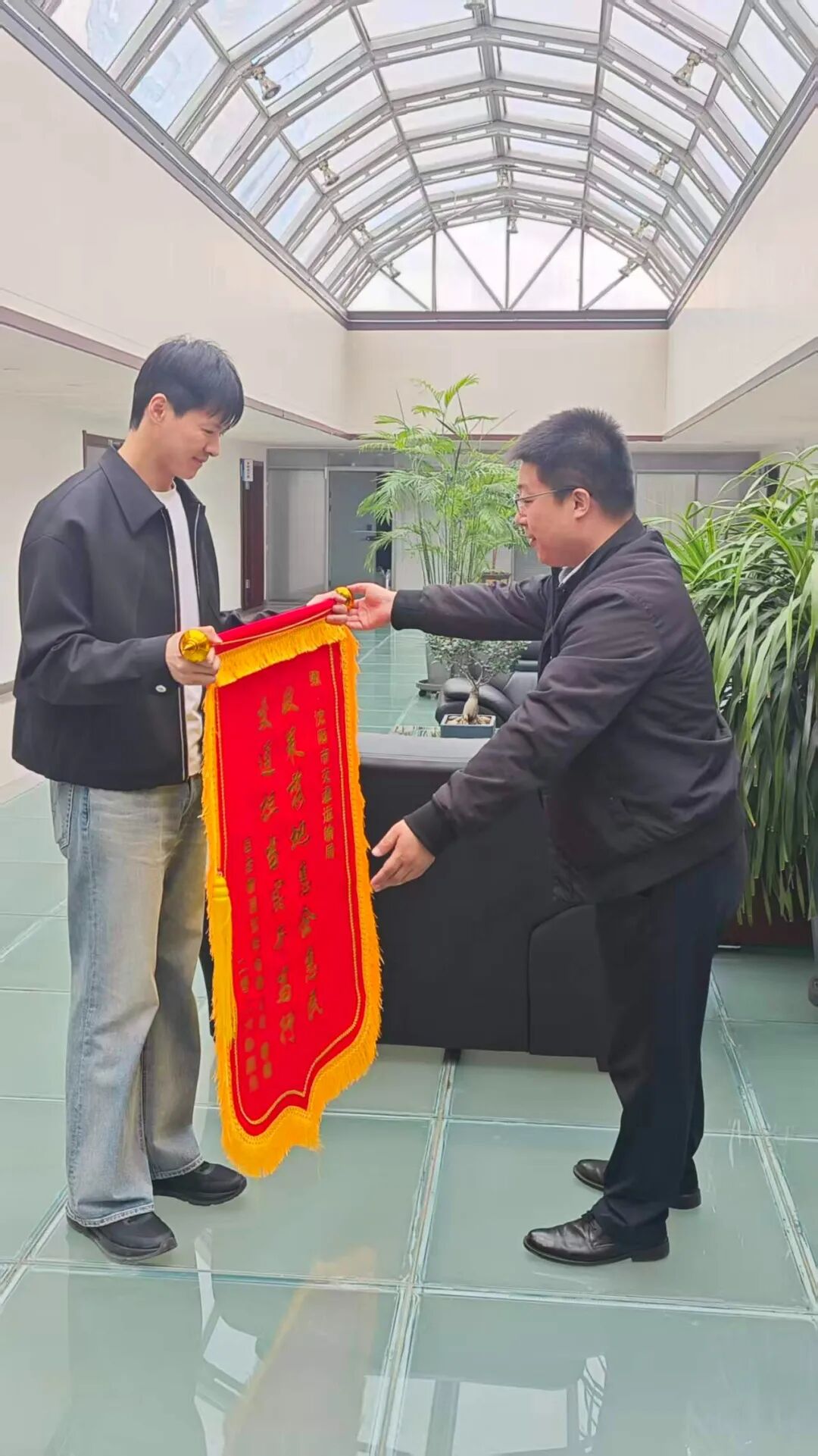 4月17日,国药物流沈阳有限公司负责人将一面印有“政策落地惠企惠民 交通担当实干笃行”的锦旗郑重送到沈阳市交通运输局,以最朴素的方式,表达对该局优化营商环境、高效落实国家综合货运枢纽补链强链政策的衷心感谢。这面锦旗既是企业的认可,更是沈阳市交通运输局实干担当、服务企业的生动缩影。