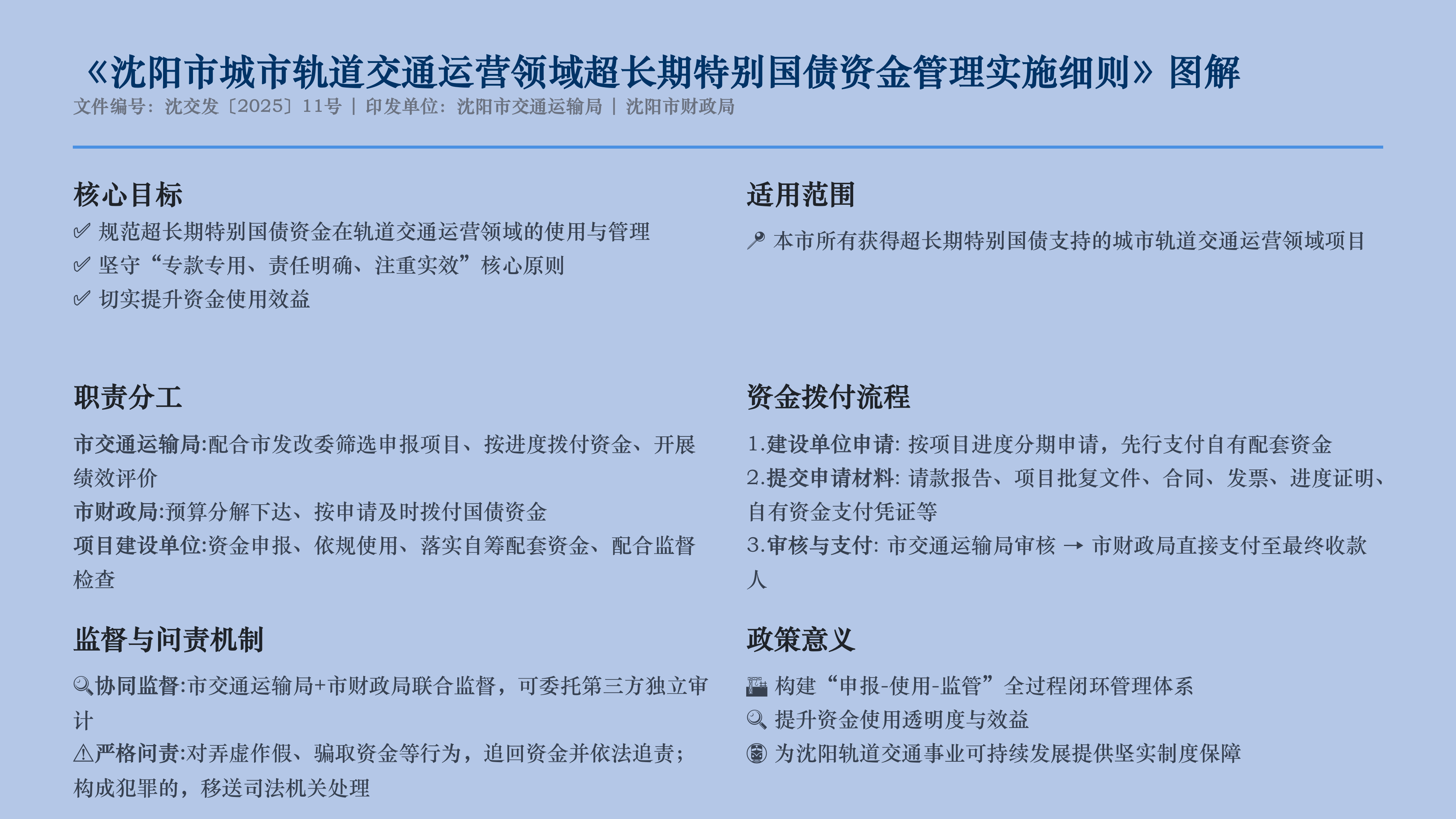 《沈阳市城市轨道交通运营领域超长期特别国债资金管理实施细则》图解